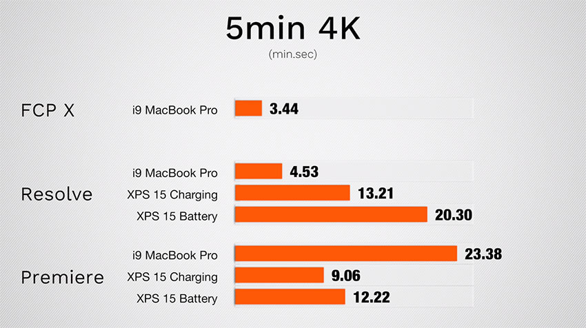 在分析DaVinci Resolve中的测试后,结果表明2018 MacBook Pro的性能远远优于XPS 9570。尽管Apple的笔记本电脑的设计选择牺牲了适当的处理器散热,但由于与Blackmagic Design的密切合作,该公司弥补了他们的失误。