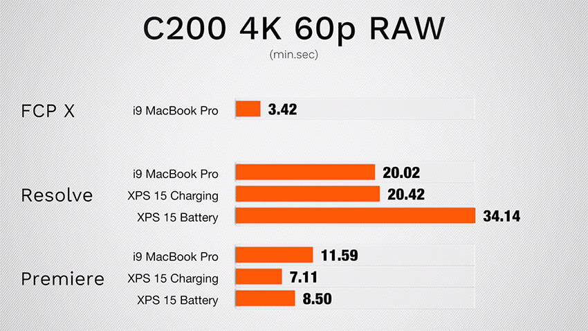 在编辑性能方面,Yuryev使用Premiere Pro、DaVinci Resolve和Final Cut Pro X(仅限Mac)在每个系统上执行了几项编辑任务。 这些测试包括稳定4K视频片段、导出5分钟4K视频项目、渲染佳能C200 RAW 4K 60p素材、以及带有LUT和色彩校正的4.5K RED RAW视频。 在完成这些测试的所有结果后,可以得出几个结论。