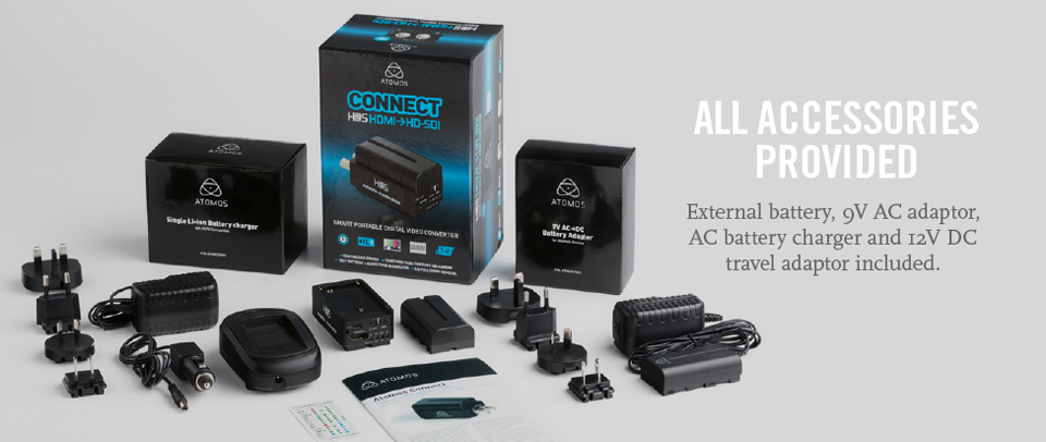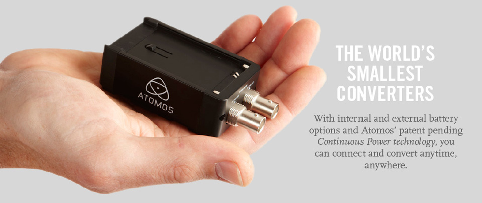 Atomos dual-battery Connect converters are the ultimate conversion and test tools for anyone who needs to convert content between HDMI and HD-SDI on location.
