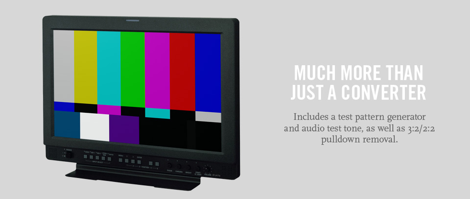Test pattern generatorConnect Converters are small enough to fit in your pocket, yet offer much more than just format conversion. They also include a test pattern generator and audio test tone, as well as 3:2/2:2 pulldown removal. We've even included a flashlight mode for use in dark locations! |