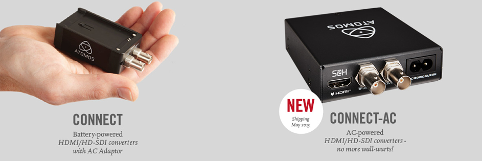 Atomos dual-battery Connect converters are the ultimate conversion and test tools for anyone who needs to convert content between HDMI and HD-SDI on location.