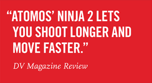 The Ninja-2 is built from aircraft-grade aluminium. It’s light and can be mounted almost anywhere. All accessories come in a rugged case: batteries, chargers, disk caddies and a PC/Mac docking station. Continuous Power allows you to unplug the depleted battery and replace it with a fully charged one without interrupting recording. The Ninja-2 comes with an AC power adaptor and two Lithium Ion camera batteries, which offer up to 10 hours battery life for continuous power on location and on the road.