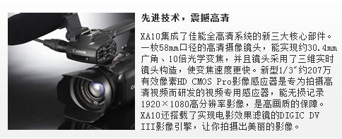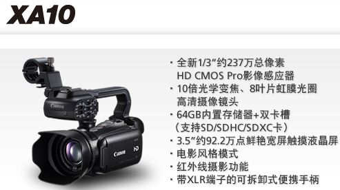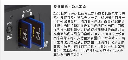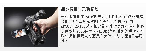 XA10小巧的机身拥有灵活应变的优势,机身配备了可拆卸式手柄,你可以根据需求自由安装或拆卸,拍摄不同的影像内容都能事半功倍。通过安装可拆卸式手柄,其它功能也相应得到扩展。