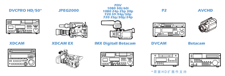 ●DVCPRO HD、D5 HD的高清解决方案