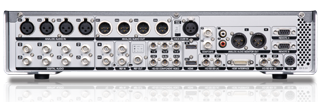 至于音频,STORM 3G Elite具有四对AES/EBU端口(八个BNC接头,每个接头提供两路高达48 kHz,24bit的音频I/O)。另外还有四对XLR平衡音频,包括各一对立体声平衡和非平衡音频监听输出。拥有可切换的线性/麦克风(可切换的幻像供电)输入,专门用于节目配音。