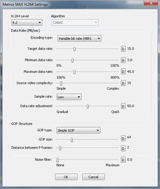 VBR targets an average bit rate. Matrox MAX squeezes out the highest quality possible for each frame while respecting the average bit rate you choose. It analyzes each video frame and determines which frames require more or less compression data. This is the preferred mode when the lowest overall file size matters, but you do not want to sacrifice quality.