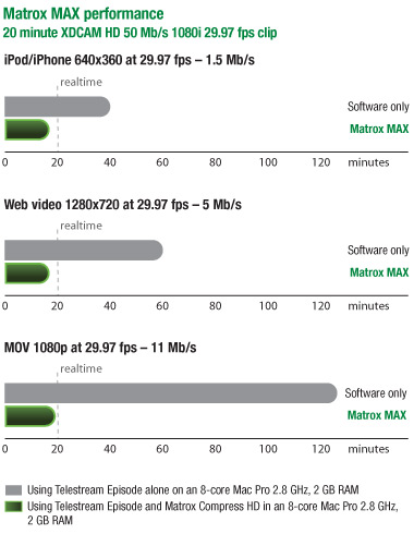 With Matrox MAX technology, you no longer need to even consider making that trade off. Matrox MAX technology is integrated directly into Apple Compressor to let you