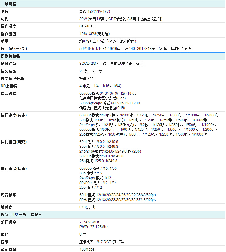 采用2/3英寸3CCD的经典机型