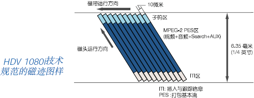 HDV 格式的HDV 1080i技术规范*2,包括1,080 行有效扫描线(隔行扫描系统) 和1,440 水平像素。它采用MPEG-2 压缩格式(视频用MP@H-14),8比特数字分量记录,采样率为4:2:0。音频压缩格式采用MPEG-1二层音频格式,双声道记录采样频率为48kHz/16比特。HDV 1080i标准提供的高质量图像可以用于高清电视节目制作。