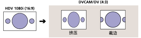 HVR-1500内置有变换功能,能够将素材从1080i下变换为480i和576i格式,并通过它的i.LINK和SD-SDI接口输出视频信号。还可以通过模拟分量、复合、或S-视频接头将信号进行输出。这允许用户使用装有DV编辑软件的非线性编辑系统编辑采用1080i记录的素材,或在标清监视器上进行观看。下变换1080i信号时,可将显示的宽高比从16:9转换为4:3。显示模式可以选择为Squeeze (挤压) 或Edge Crop(裁边)。