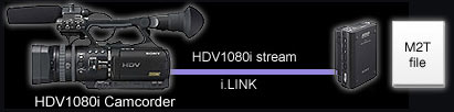 通过i.LINK 进行连接,Sony 开发的HVR-DR60 硬盘记录单元可以记录HDV摄录一体机的HDV1080i信号,或DVCAM摄录一体机的DVCAM/DV信号。内置的1.8英寸硬盘容量高达60GB,可对HDV和DVCAM格式文件进行4.5小时(270分钟)的记录。HDV 1080i信号被记录为本地HDV文件(.m2t),DVCAM或DV信号被记录为DV-AVI文件(1型)或RAW-DV文件。