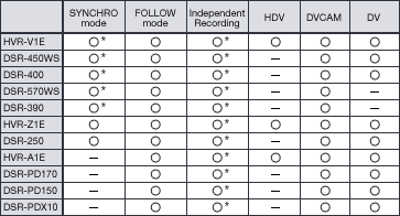 使用不支持外部记录控制的摄录一体机,如HVR-A1E和DSR-PD170时,可使用跟随模式来启动和停止HVR-DR60的记录。在此模式中,HVR-DR60会定期检查摄录一体机是否处于记录模式,对这种状态进行跟随*。