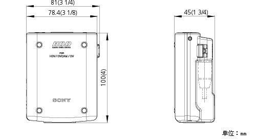 HVR-DR60 尺寸为81 x 45 x 100 mm ,重量仅为230g。使用随机提供的适配器,可将HVR-DR60安装在摄录一体机的冷靴之上,也可使用选购的VCT-1BP安装架进行安装。