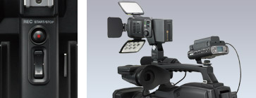 HVR-HD1000C摄录一体机手柄采用了人体工程学设计,装有一个便捷的记录按键和便捷控制,可在低位拍摄时使用。手柄的前部和后部都装有冷靴,可安装两个附件,如HVL-LBP 摄影灯和HVR-DR60硬盘记录单元等。