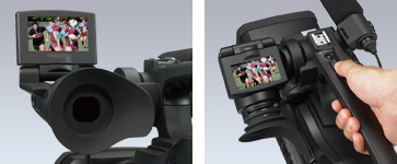 寻像器装置的顶部装有一个大尺寸、可任意旋转的2.7英寸LCD屏幕,当HVR-HD1000C 位于低角度或安装在三角架上时可方便地观看寻像器。导演和客户也可使用它观看拍摄画面。LCD使用211,200点宽屏幕Clear Photo LCD plus装置,可提供更加合适的亮度和更高级别的色彩还原。