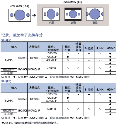 *4 HVR-M25C/M15C 仅支持DV SP 模式,不支持DV LP 模式。
