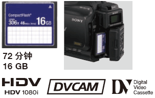 16GB CF卡记录HDV、DVCAM和DV格式内容的时间约为72分钟