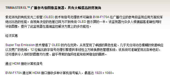 BVM-F170A 16.5英寸宽视角参考级监视器