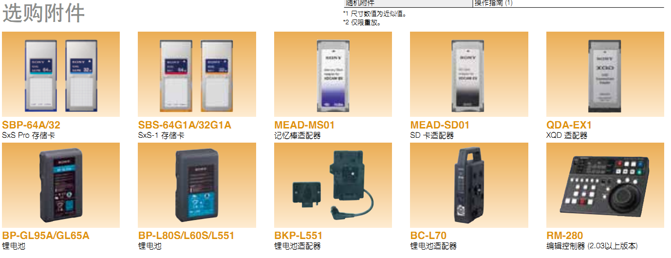 支持目前所有XDCAM EX系列存储卡摄录一体机的所有高标清格式的记录和回放,包括最新的PMW-580/300/EX280/EX260等